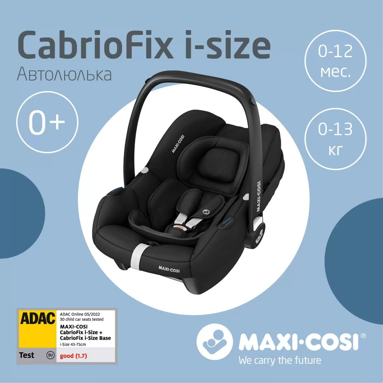 Автокрісло Maxi-Cosi CabrioFix i-Size –  інноваційне та технологічно продумане автокрісло, яке легко адаптується під потреби малюка з народження до 1 року (зростом 40-75 см).