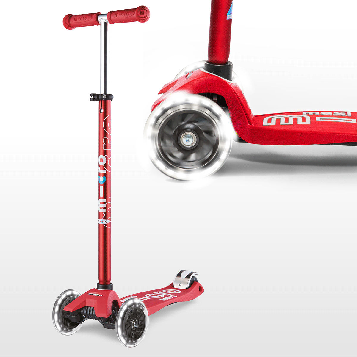 Самокат триколісний дитячий Micro Maxi Deluxe LED (підсвічування коліс, складаний) MMD068 Червоний